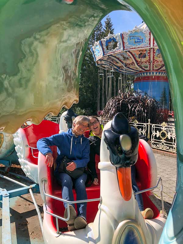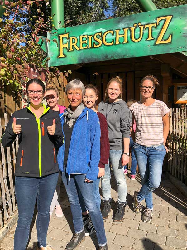Unsere besonders mutigen Damen genossen den "Freischütz" in 40 Sekunden pures Adrenalin auf 483 Metern. In 2,3 Sekunden von 0 auf 80 km/h. Vier Inversionen und drei Überkopfelemente.