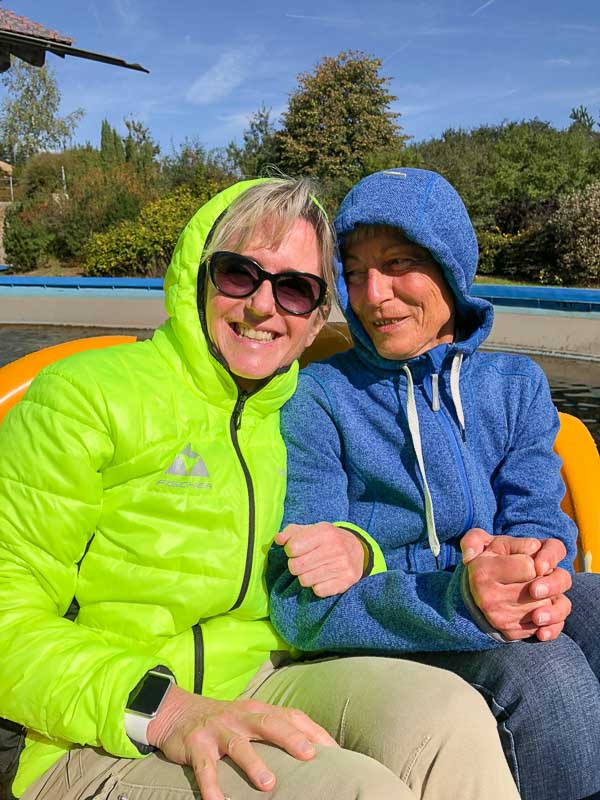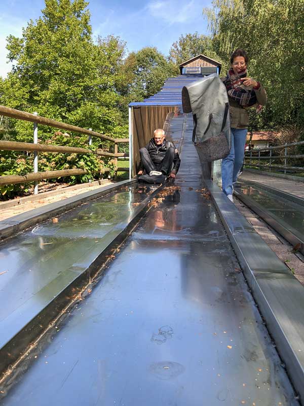 Entspannter war das rutschige Vergnügen... und eine rauschende Fahrt auf einem millimeterdünnen Wasserfilm, einer 70 Meter langen Strecke, den Hang hinab ins Tal.