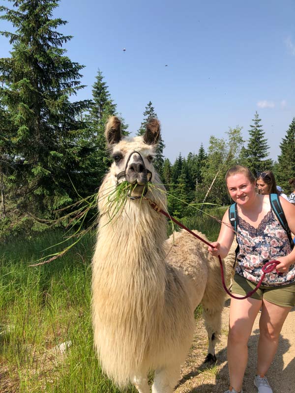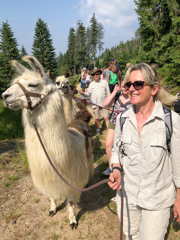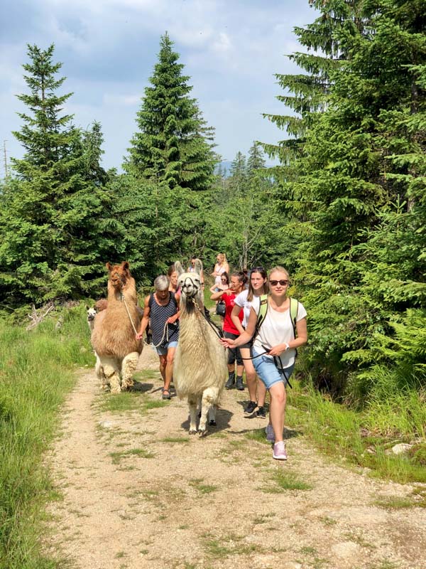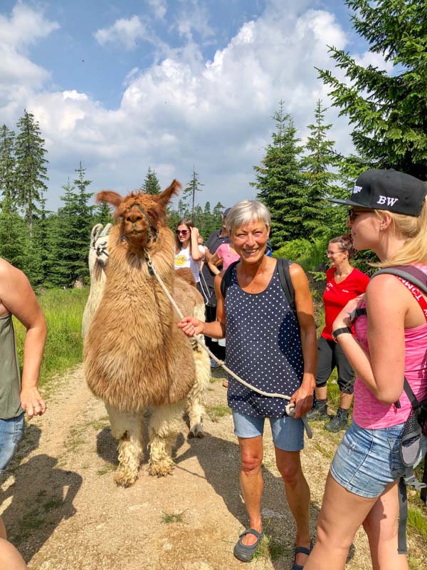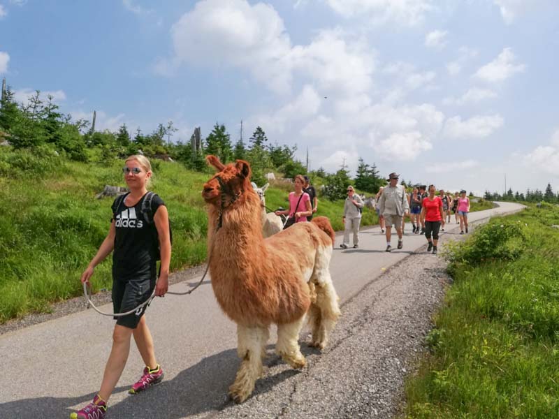 Diesmal besuchten wir den Gidihof in Jandelsbrunn und unternahmen eine Lama-Wanderung am Dreisessel. Die schlanken Vierbeiner aus den Anden sind ruhige, gutmütige und genügsame Tiere. Ihr freundliches Wesen wirkt auf die Menschen ausgleichend und entspannend.